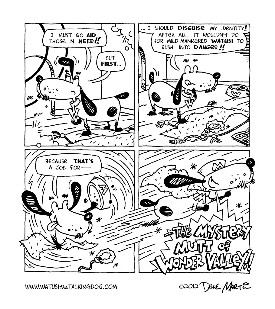 And, though it might be difficult to maintain in the readers’ minds over the length of this sequence, my conceit here is that Watusi still thinks he’s dreaming about being a superhero. Wish me luck at pulling it off!