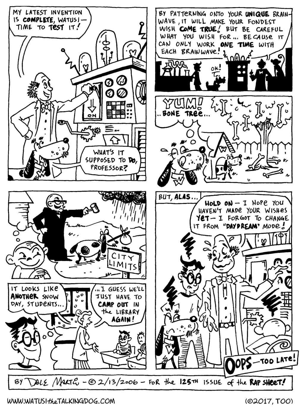 From 2005-2009 I was a member of the Small Press Syndicate, a collective of cartoonists who got together in print every other month to share our comics and talk shop. From time to time I drew a new Watusi strip for the pages of our bimonthly newsletter Rap Sheet, most of which have already been collected in Watusi print comics … but here’s one that hasn’t! Hope you enjoy…