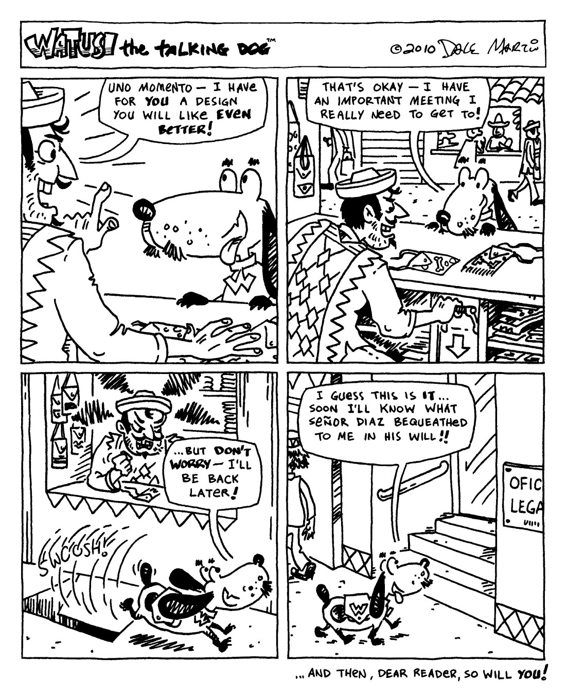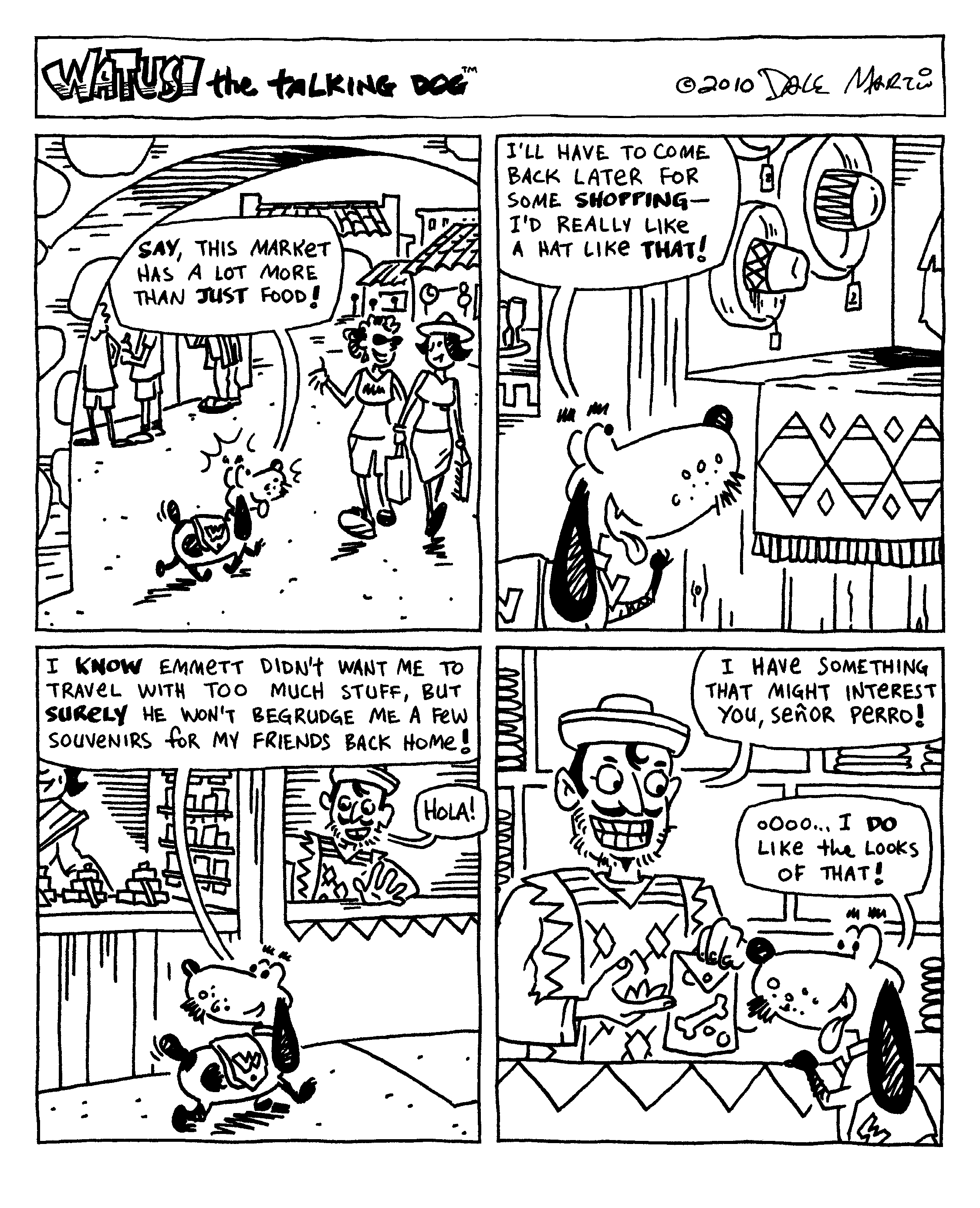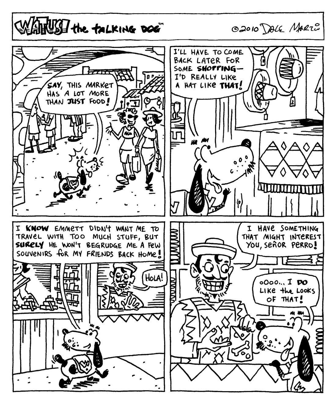“Getting his bearings” Uh oh! Maybe Isla Esmerelda isn’t going to be the peaceful island vacation Watusi had in mind…