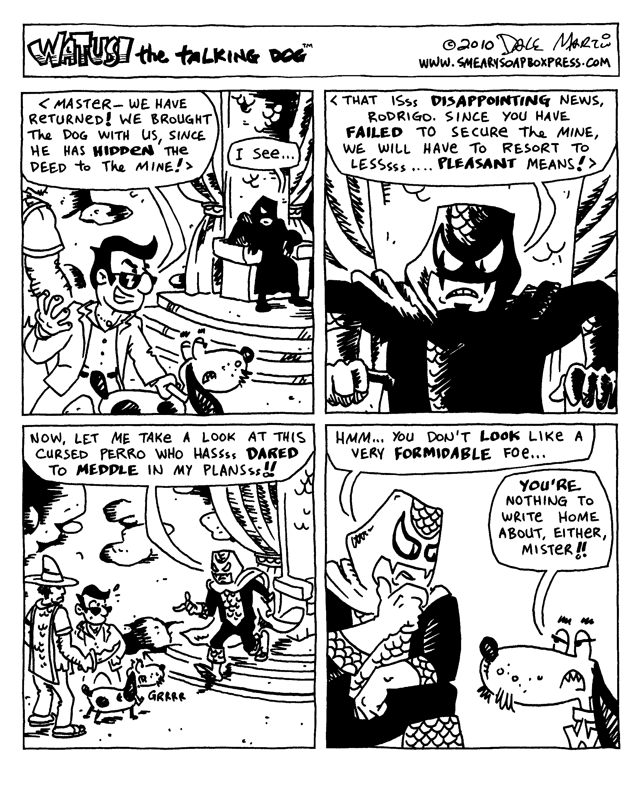 Yes, in the great pulp tradition of Doc Savage, Watusi has met the Master in another guise! Feel free to revisit the earlier strips, or wait for all to be revealed in good time …