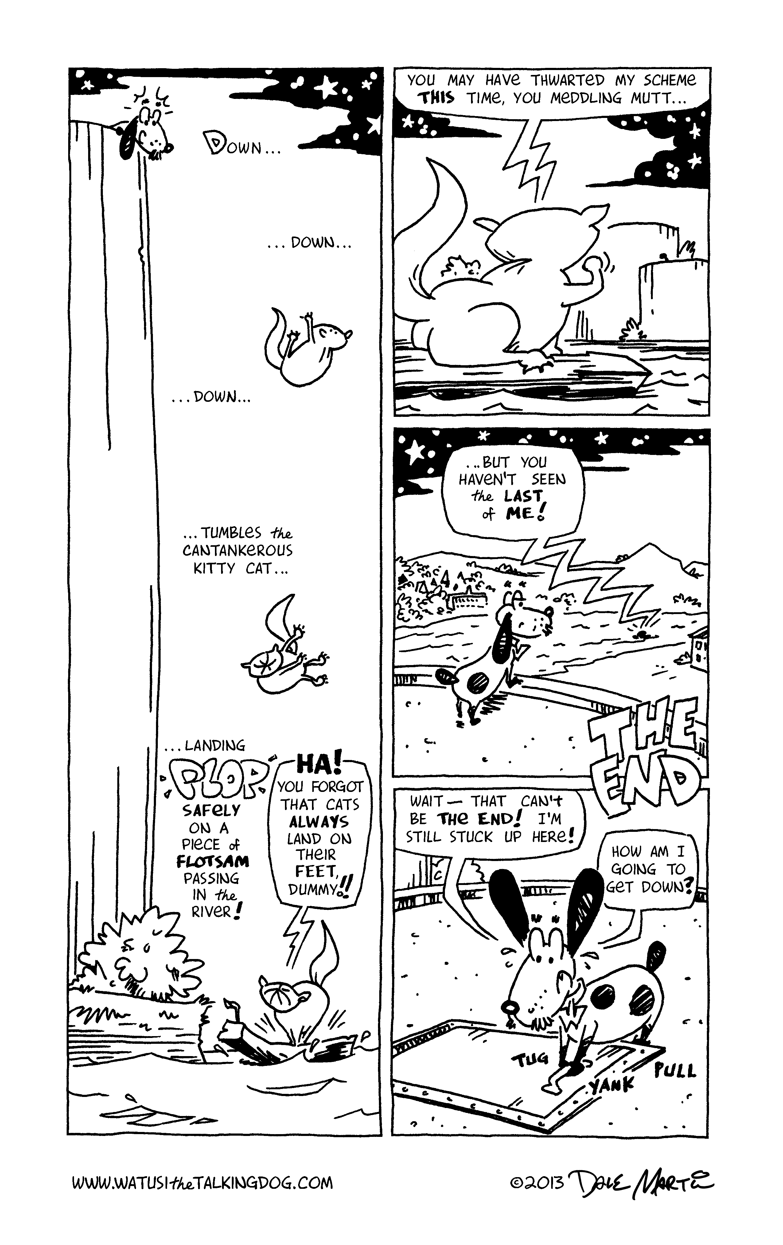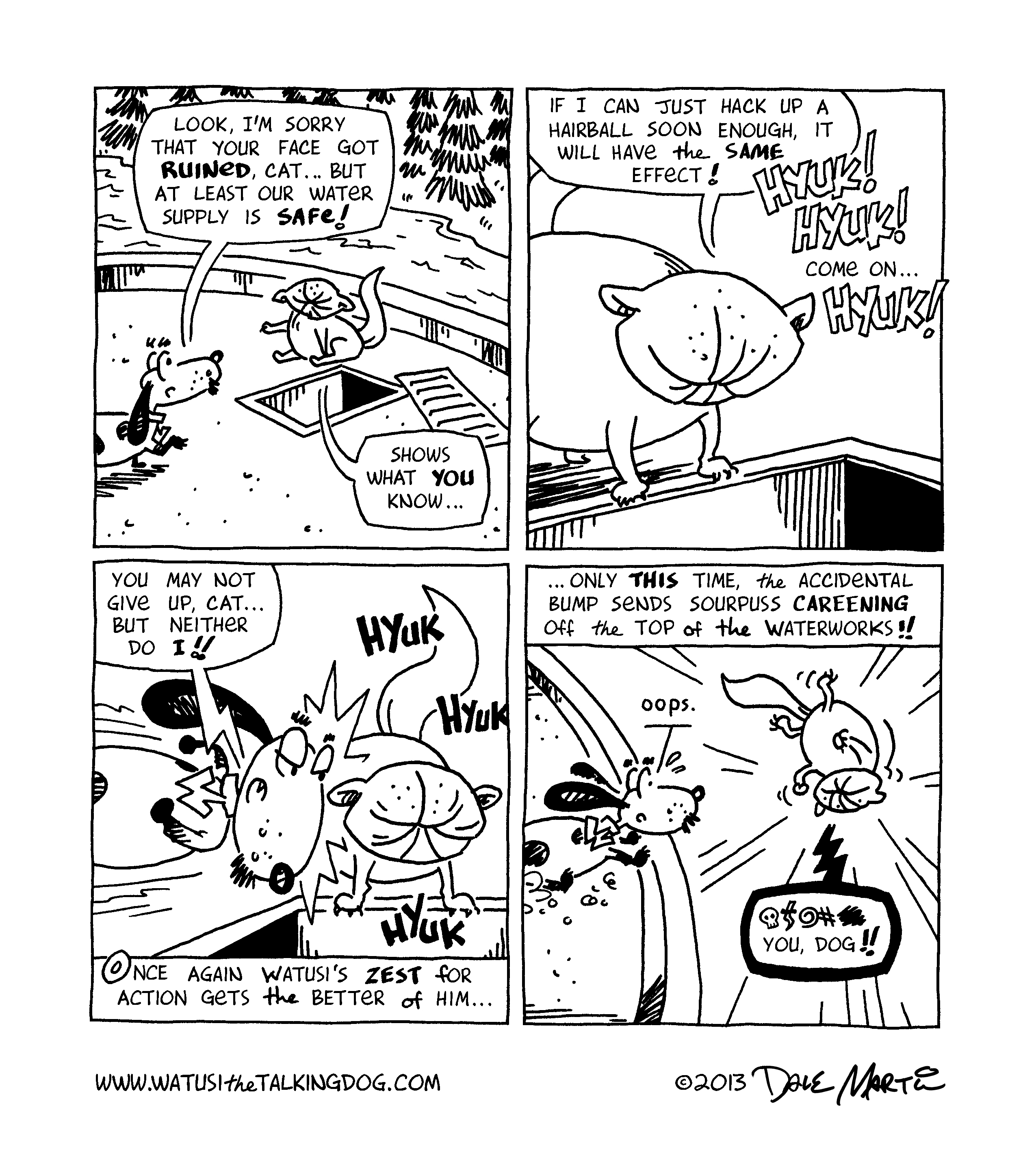 Next week: thrill to Watusi’s escape from the top of the waterworks!! And while that’s not the most exciting hook to try to draw you back in, I hope you’ll tune in anyway. Thanks for reading “The sinister scheme of Sourpuss”!
