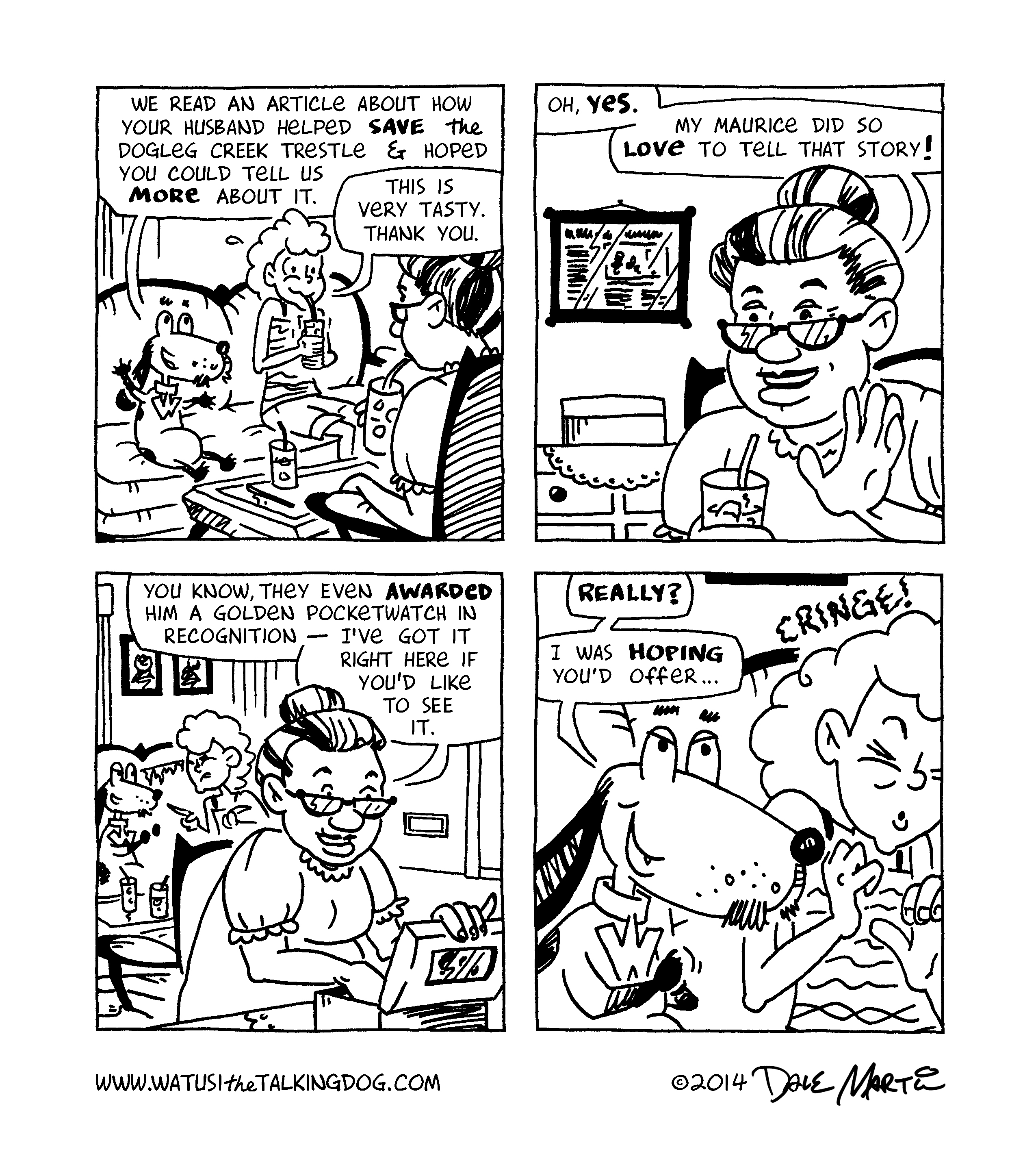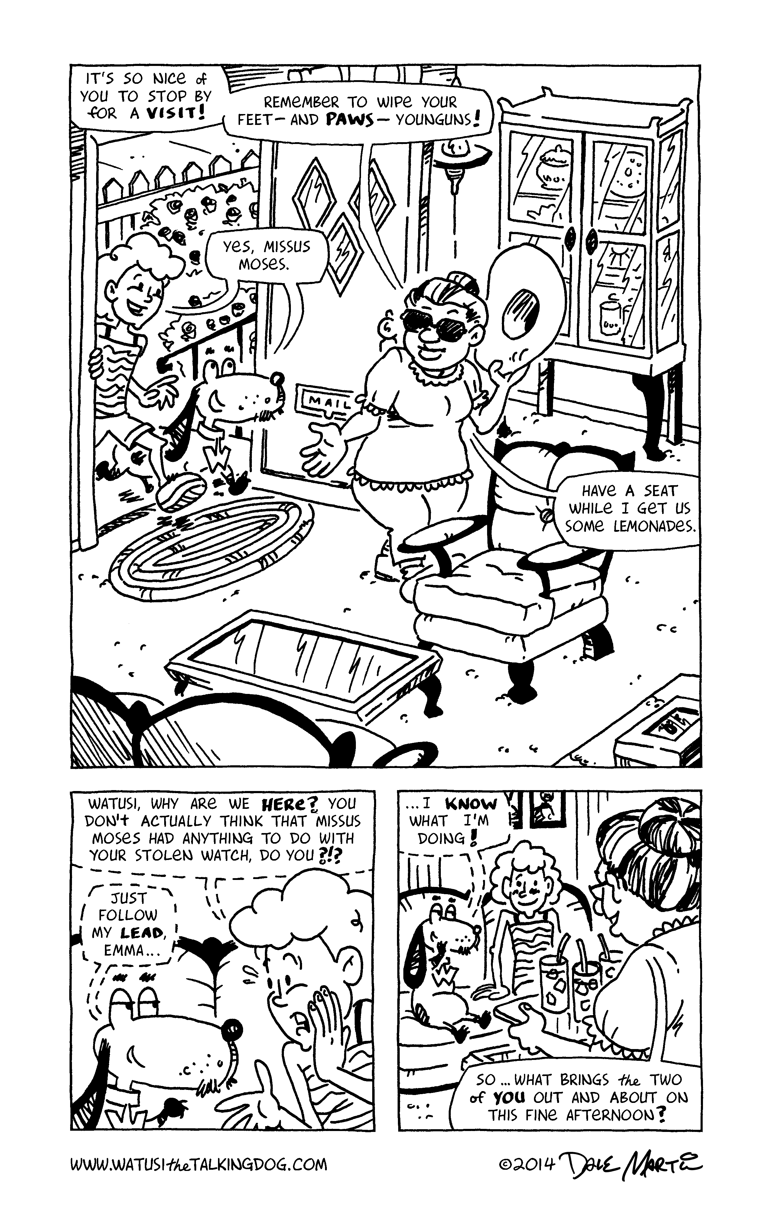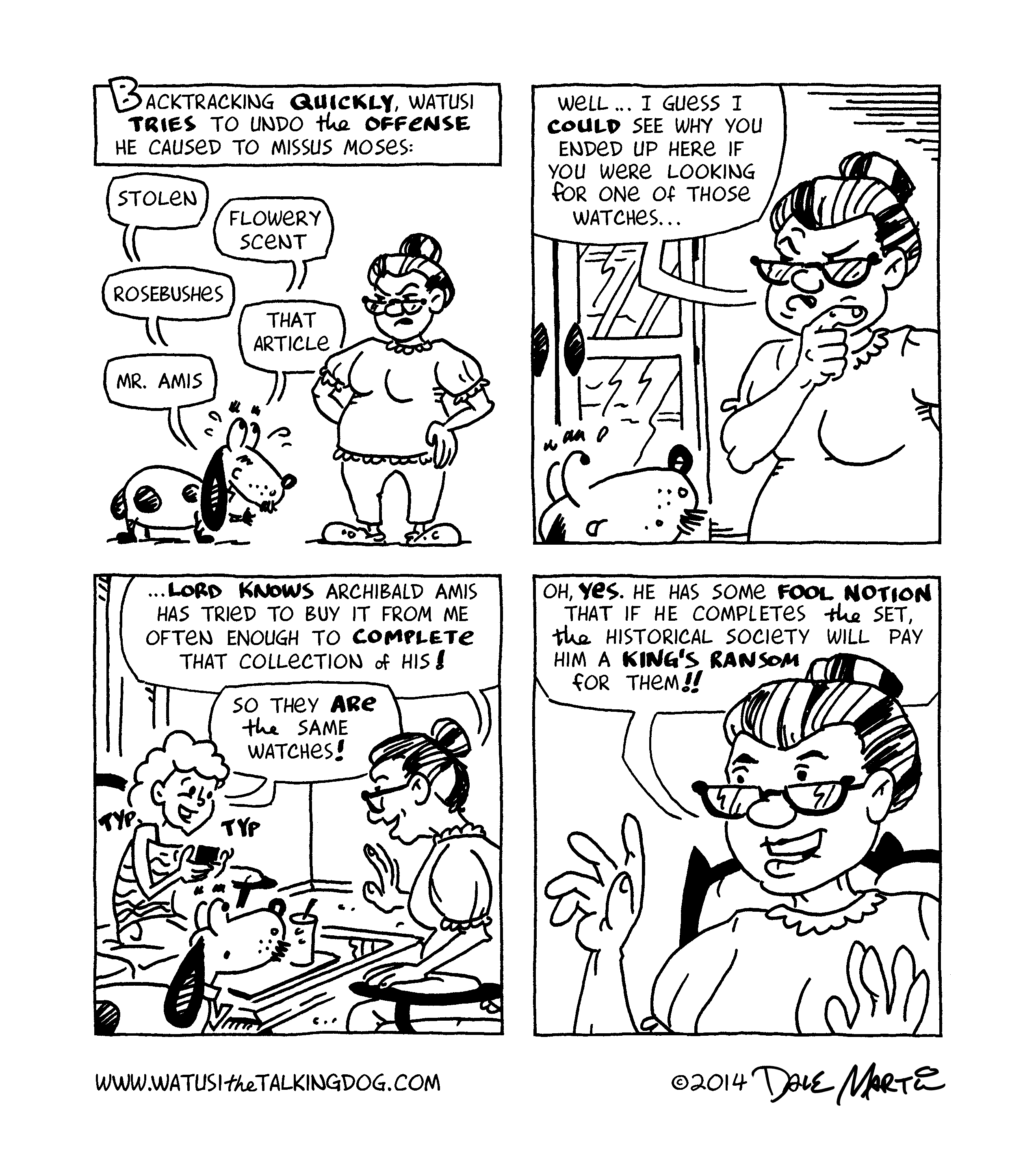 Aha! Looks like Watusi is finally closing in on the secret behind his purloined pocketwatch! Things are looking up for his 2015, and I hope they are for yours, too — best wishes for a happy and healthy new year!