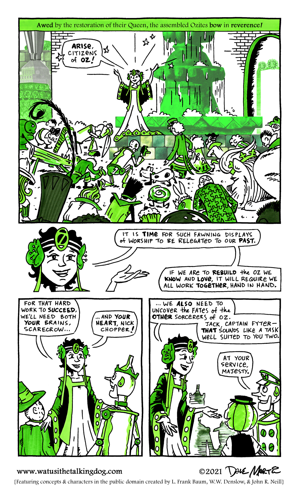 While this is certainly a more topical ending than I’ll use in any eventual “Watusi in Oz” book collection, it’s one that feels kind of right for the world we have as I finish this storyline up at long, long last. A big thank you goes out to those of you who stuck around for this epic comic adventure that lived up to its “epic” description! Feel free to share your thoughts below, or email me if you don’t want it to be for public consumption…