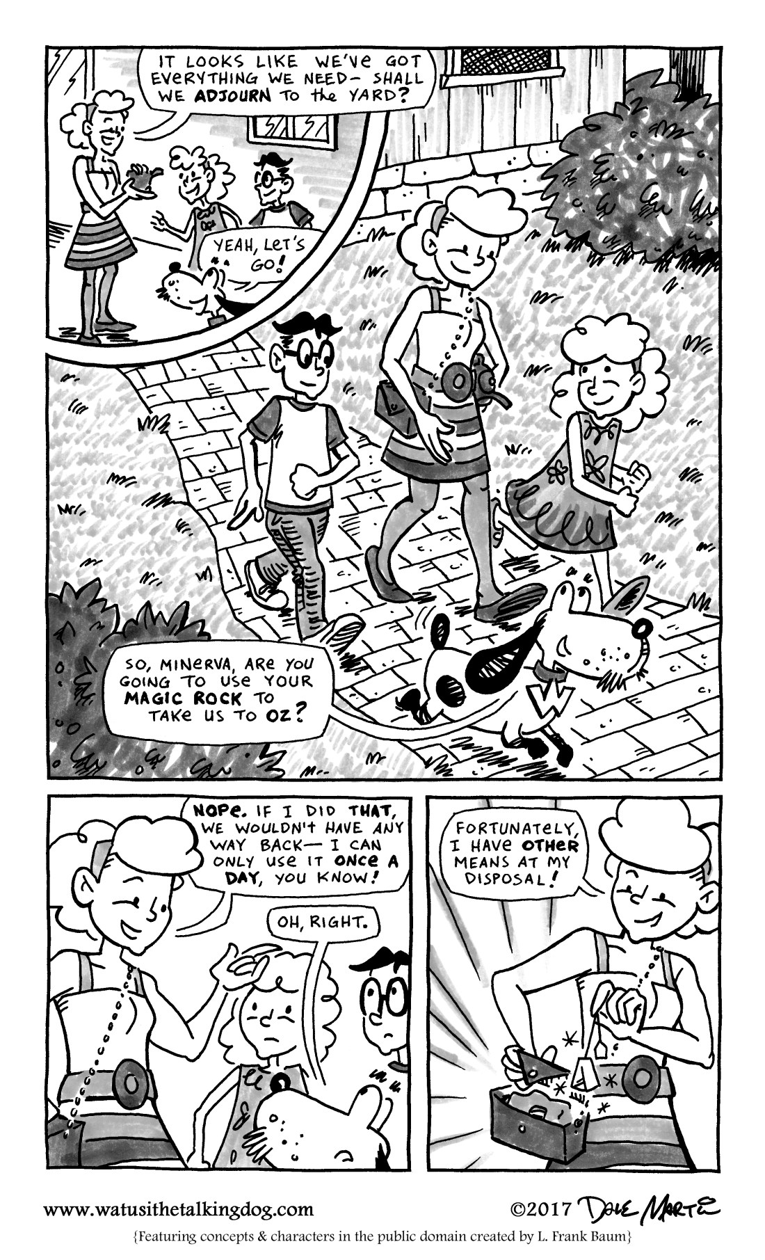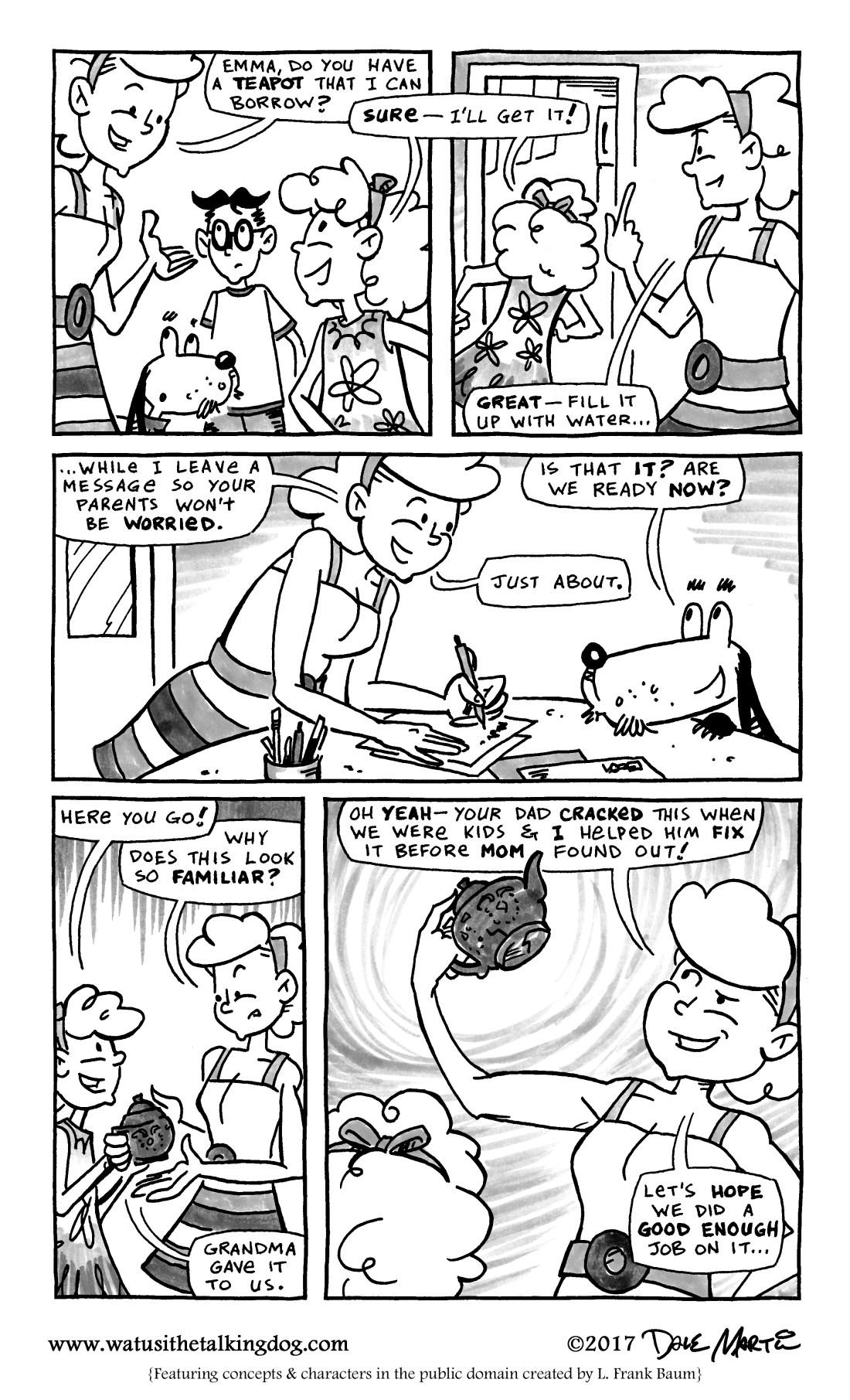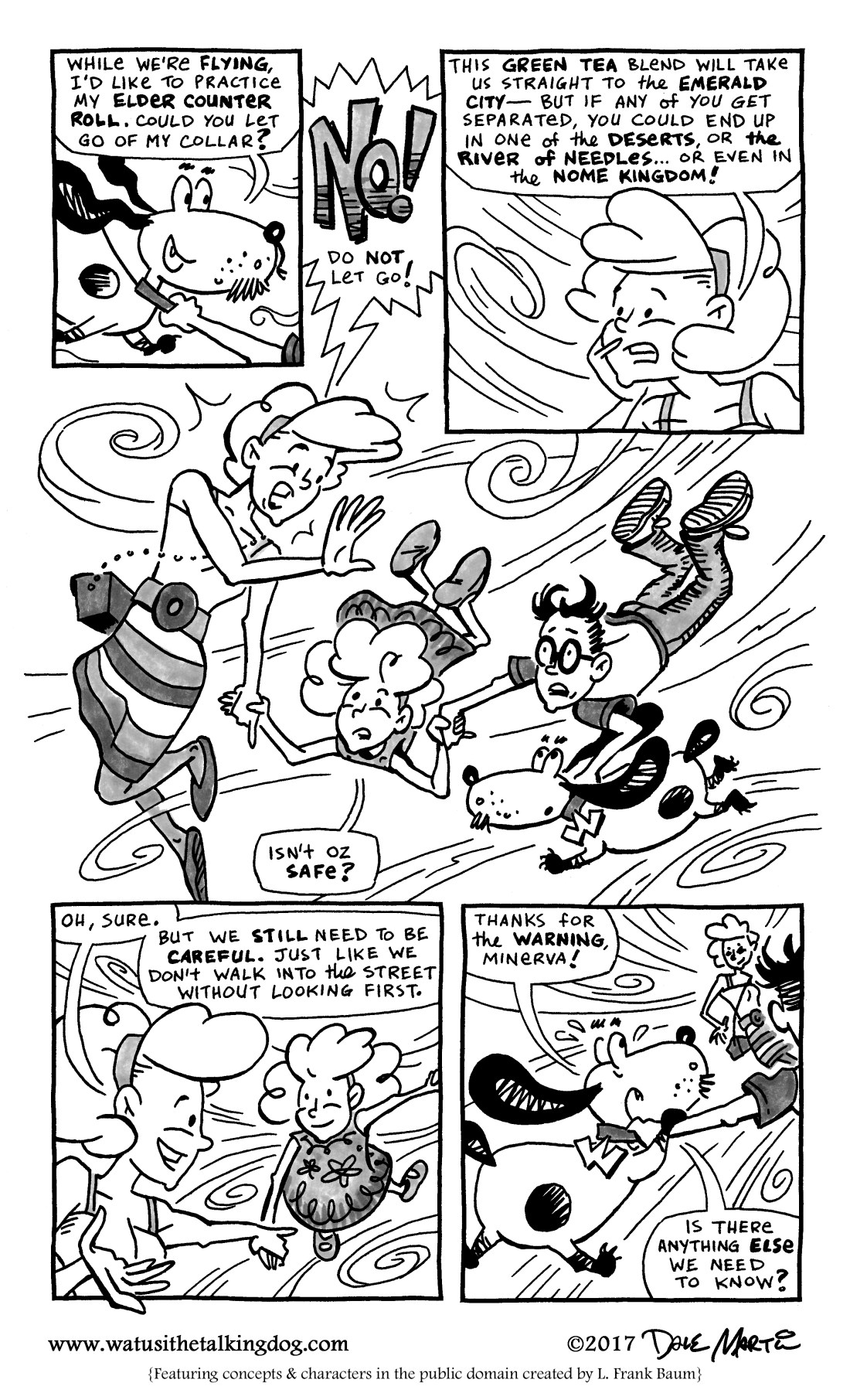 On another technical note, I’m switching to present tense with my writing here. I was trying to match Baum’s use of past tense, but I just didn’t like how it meshed with spoken dialog in a comic panel. For the writers out there, compare this week’s strip to this one and this one— which sounds better to your ears?