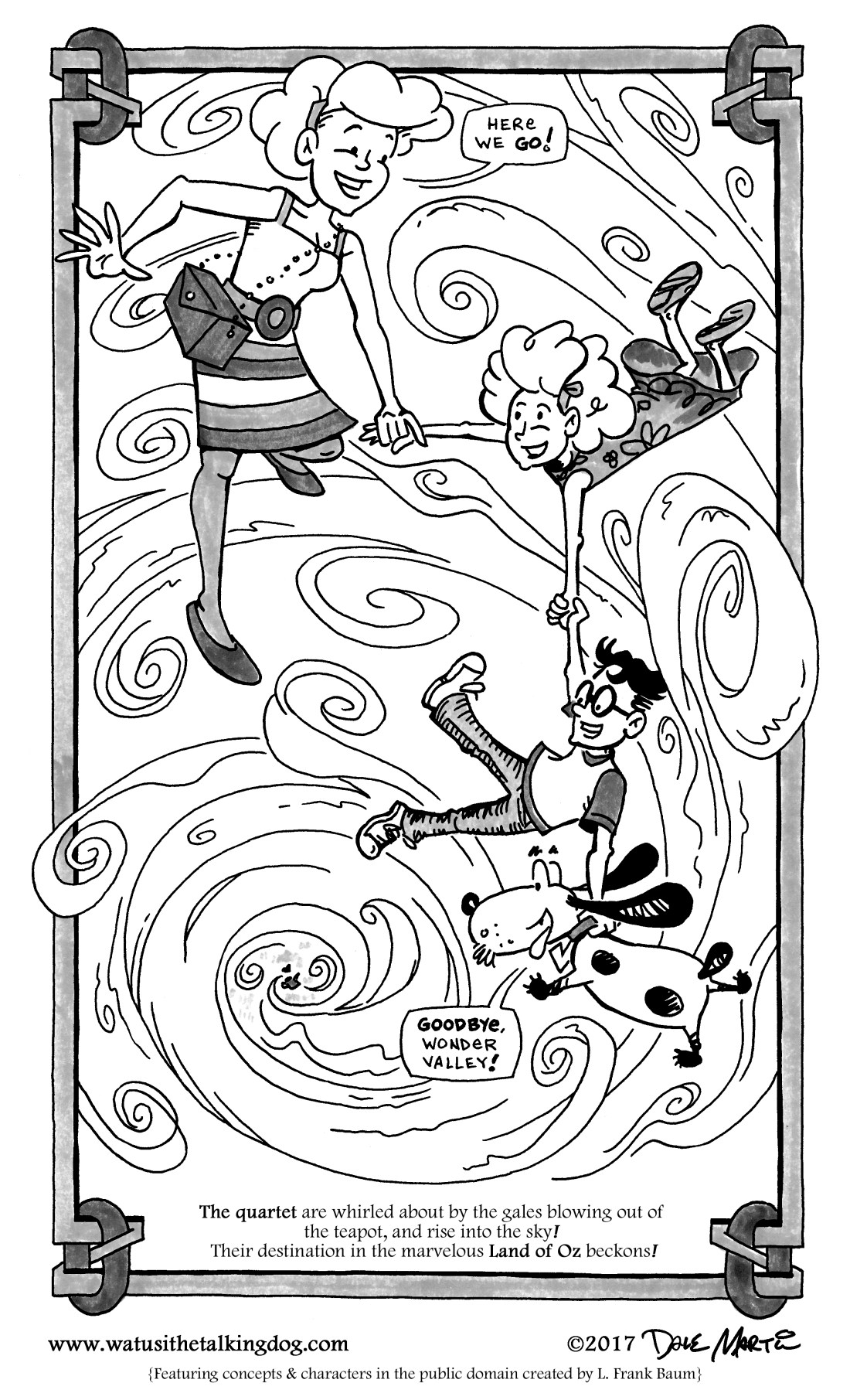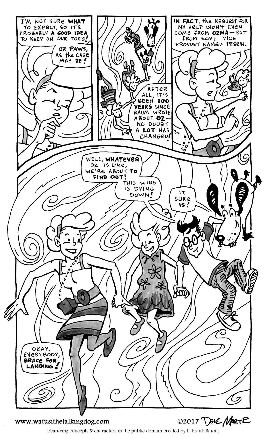 I don’t often do splash pages like this; especially with a week between episodes, they don’t give a lot of story content for the space they use. But since W.W. Denslow created such lovely plates for The Wonderful Wizard of Oz, I wanted to include some in my Oz story, too … and in such a way that places them in the context of the story.