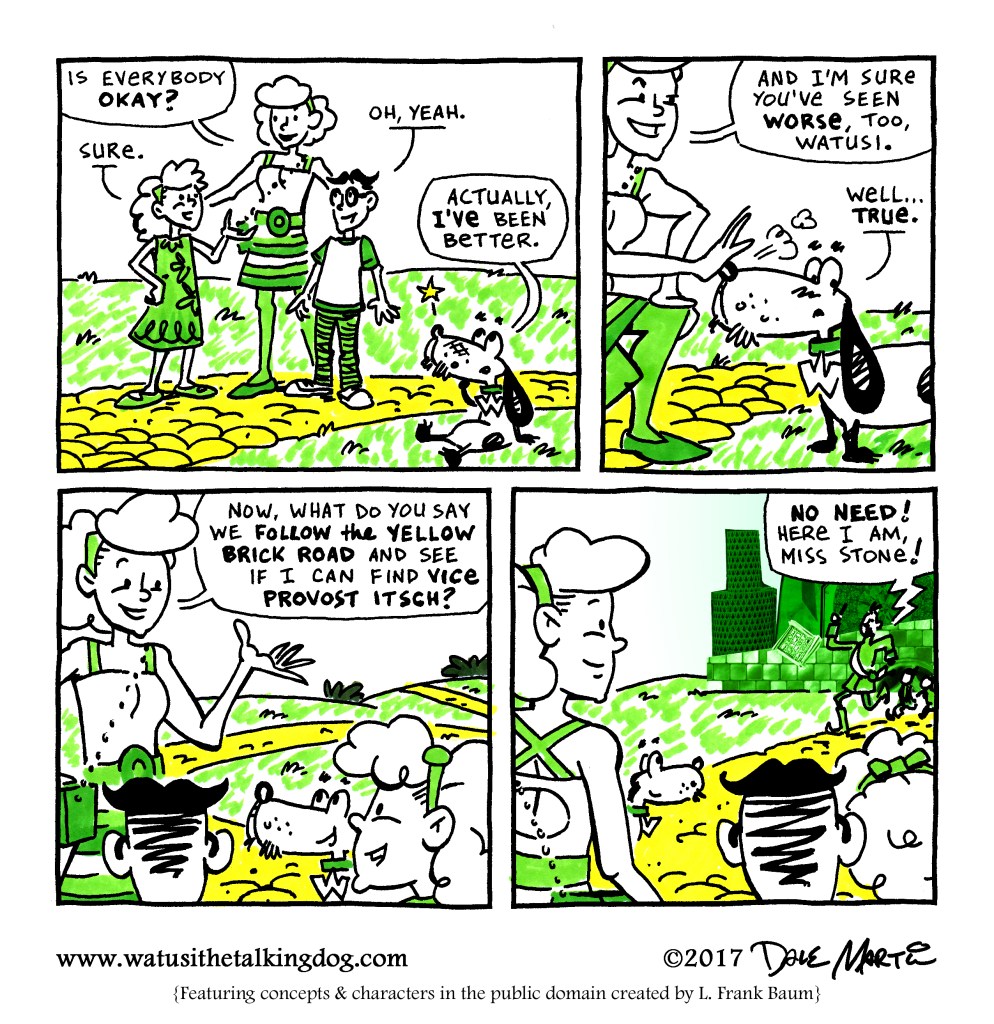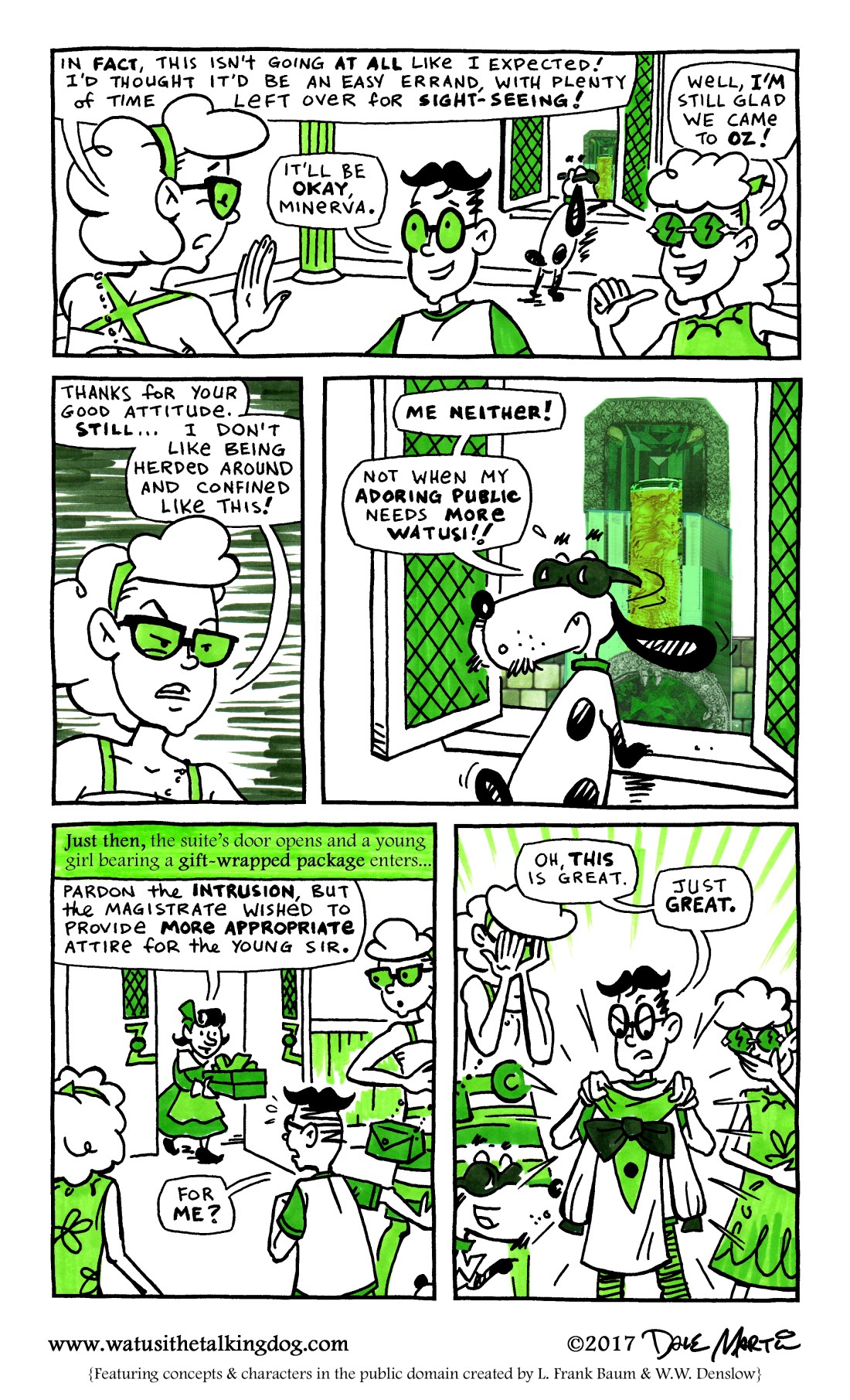 If you’re interested in some behind-the-scenes sneak peeks of things to come in Watusi’s journey to Oz, you’re invited to patronize me on Patreon. Supporters there have been treated to an early peek at my designs for the Emerald City, Oz character designs, and even a never-reprinted 4-page Watusi comic from 2014. Coming up for patrons there in June is the first Minerva Stone comic from 1999, which will be a useful primer for her role coming up in this storyline. Join in the fun, won’t you?