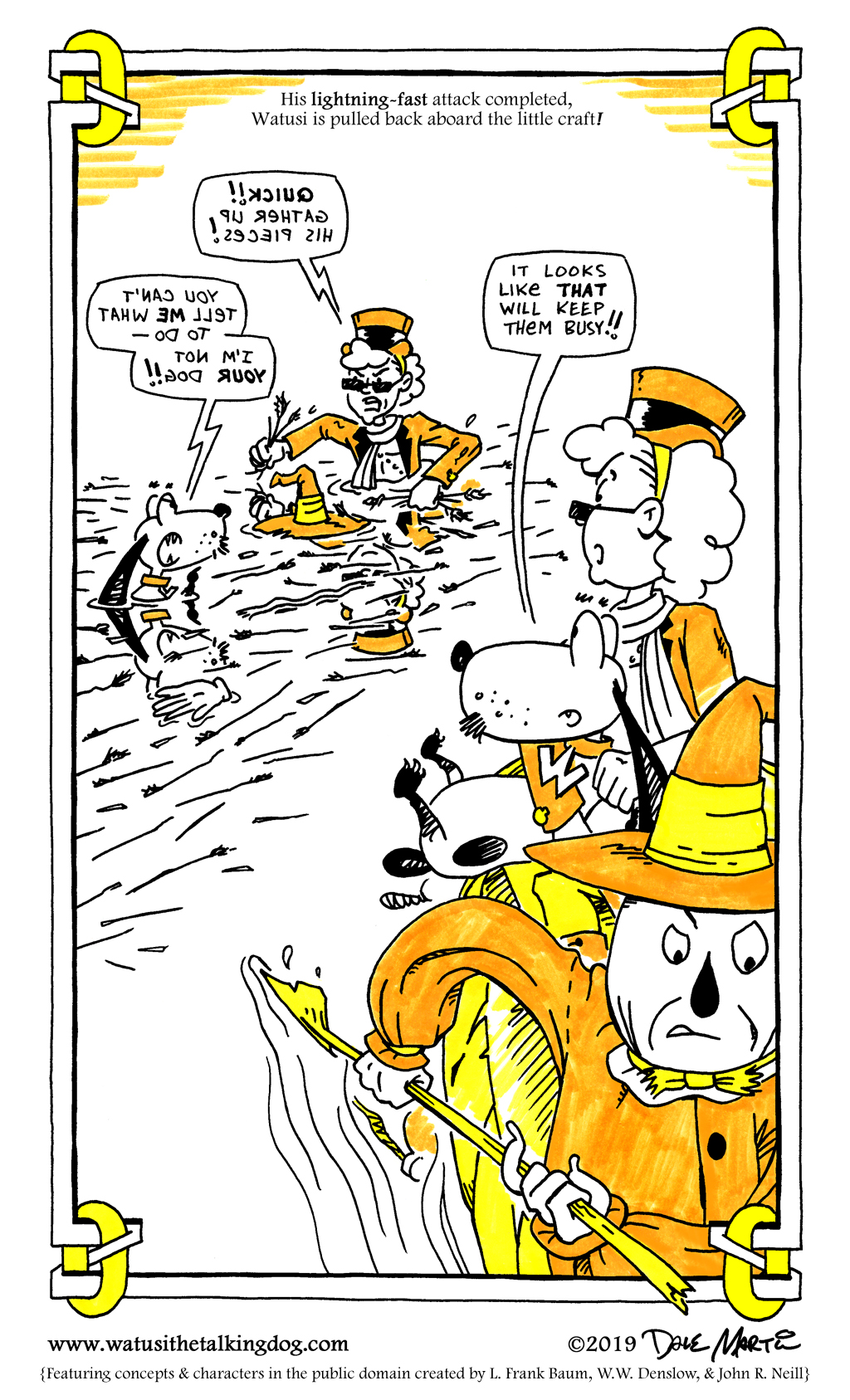 Let’s hope Watusi’s frenzy causes enough distraction that the Scarecrow can paddle them to safety!