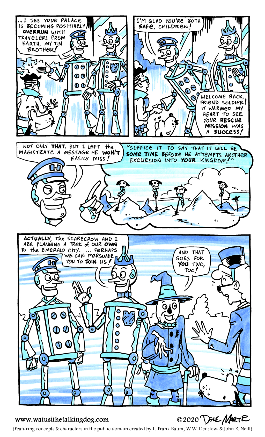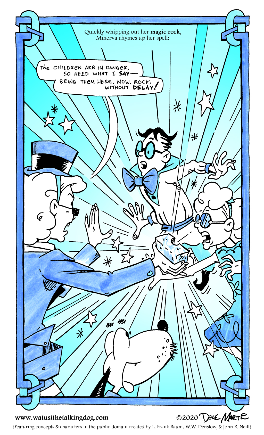 Captain Fyter’s actions here may seem gruesome, but it’s my little tip of the hat to Baum’s The Wonderful Wizard of Oz. While he toned down the violence in later books, that first novel featured a surprising number of decapitations!
