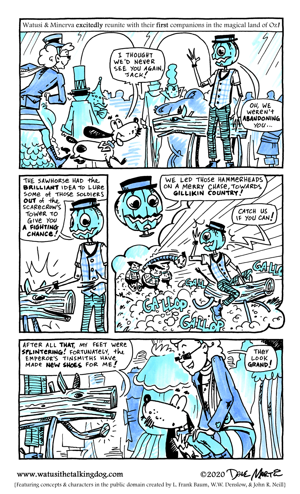Captain Fyter’s actions here may seem gruesome, but it’s my little tip of the hat to Baum’s The Wonderful Wizard of Oz. While he toned down the violence in later books, that first novel featured a surprising number of decapitations!