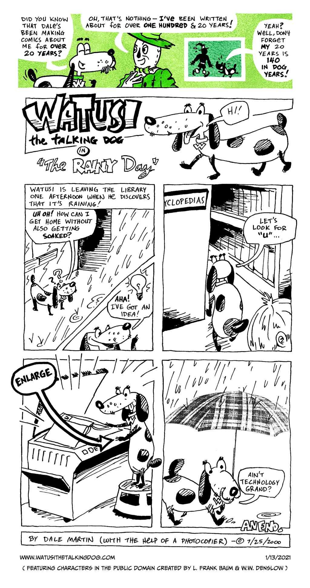 It wouldn’t be a walk down memory lane without a glimpse at the very first Watusi comic, now would it? First published as part of my “Larry’s Kitchen” zine in APA-5 #308 (August 2000), I included it in the first Watusi the Talking Dog digest comic a couple of years later. If you want to read more about Watusi’s origins, you can do so here!