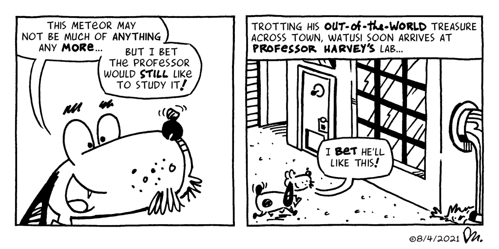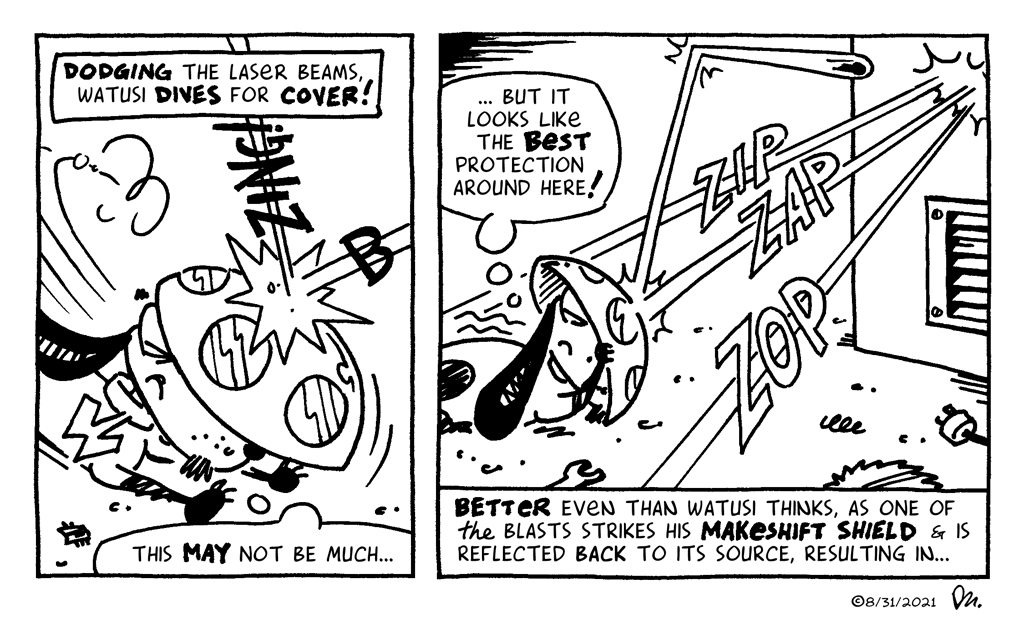 This is just a little taste of my new monthly Watusi comic, exclusive for my newsletter subscribers. You can read the rest of this strip in my September newsletter (and subscribe, if so inclined) …