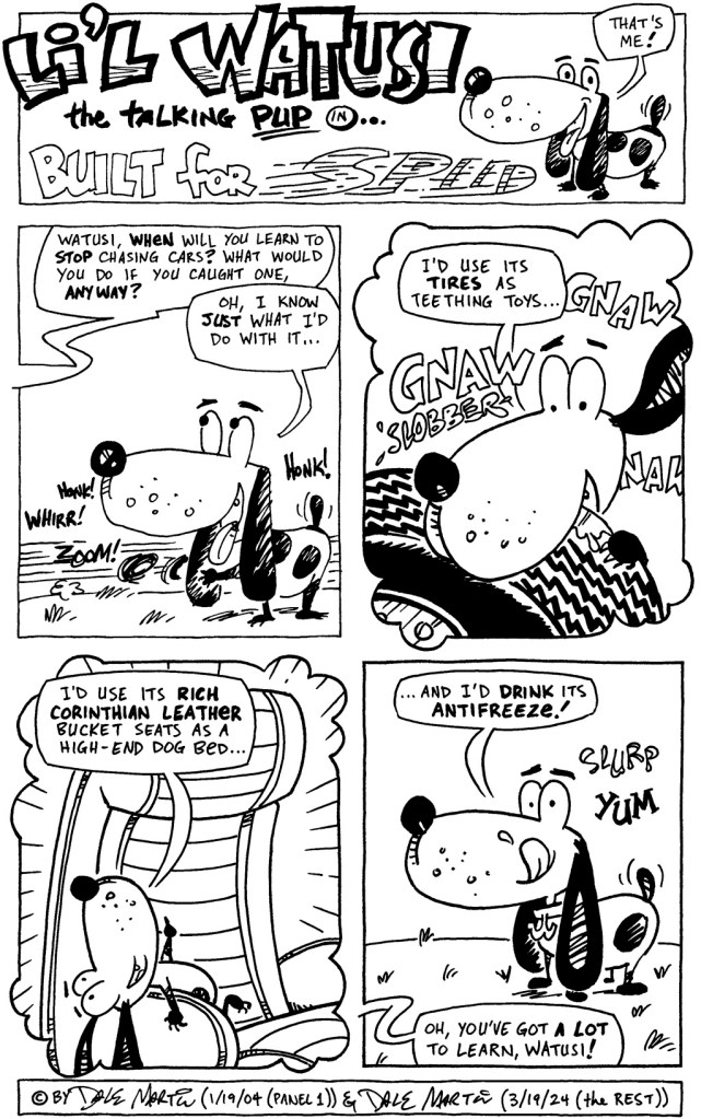 At one point I was planning to do more Li’l Watusi starter panels, but this is the only one I made. It’s not the only Li’l Watusi story I have in mind, though…