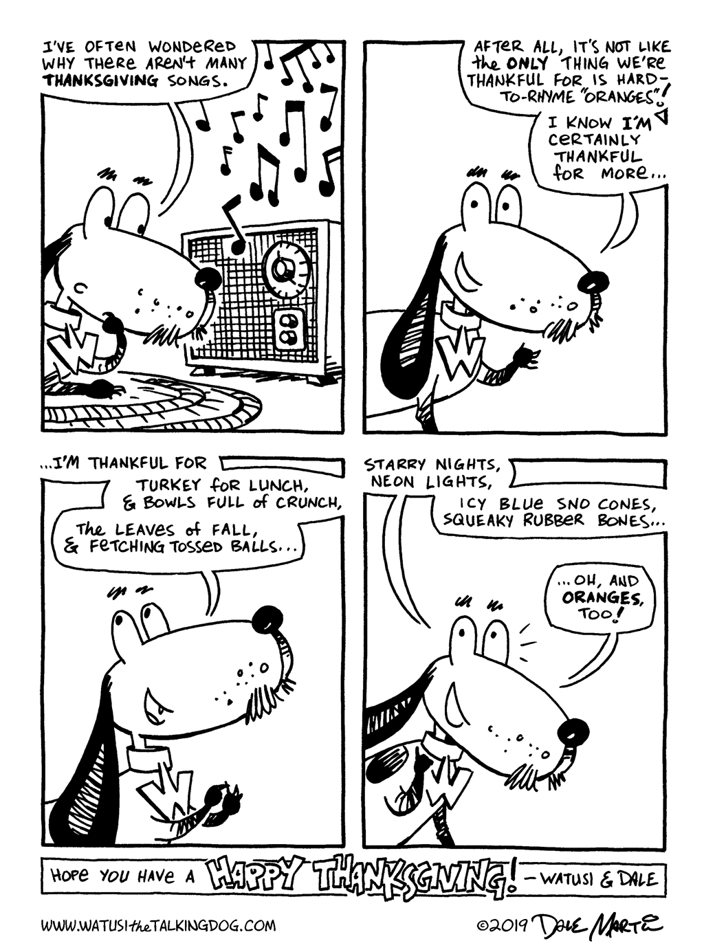 Hope you have a happy Thanksgiving! (“Watusi in Oz” resumes Wednesday, January 1, 2020!)